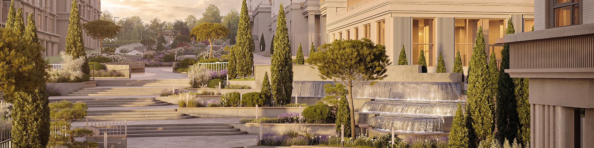 Архитектура комплекса вдохновлена элегантными курортными особняками, а квартиры спроектированы с особой любовью к деталям: здесь предусмотрены просторные планировки с открытыми террасами, зимними садами, мастер-спальнями и большими окнами с панорамным остеклением.